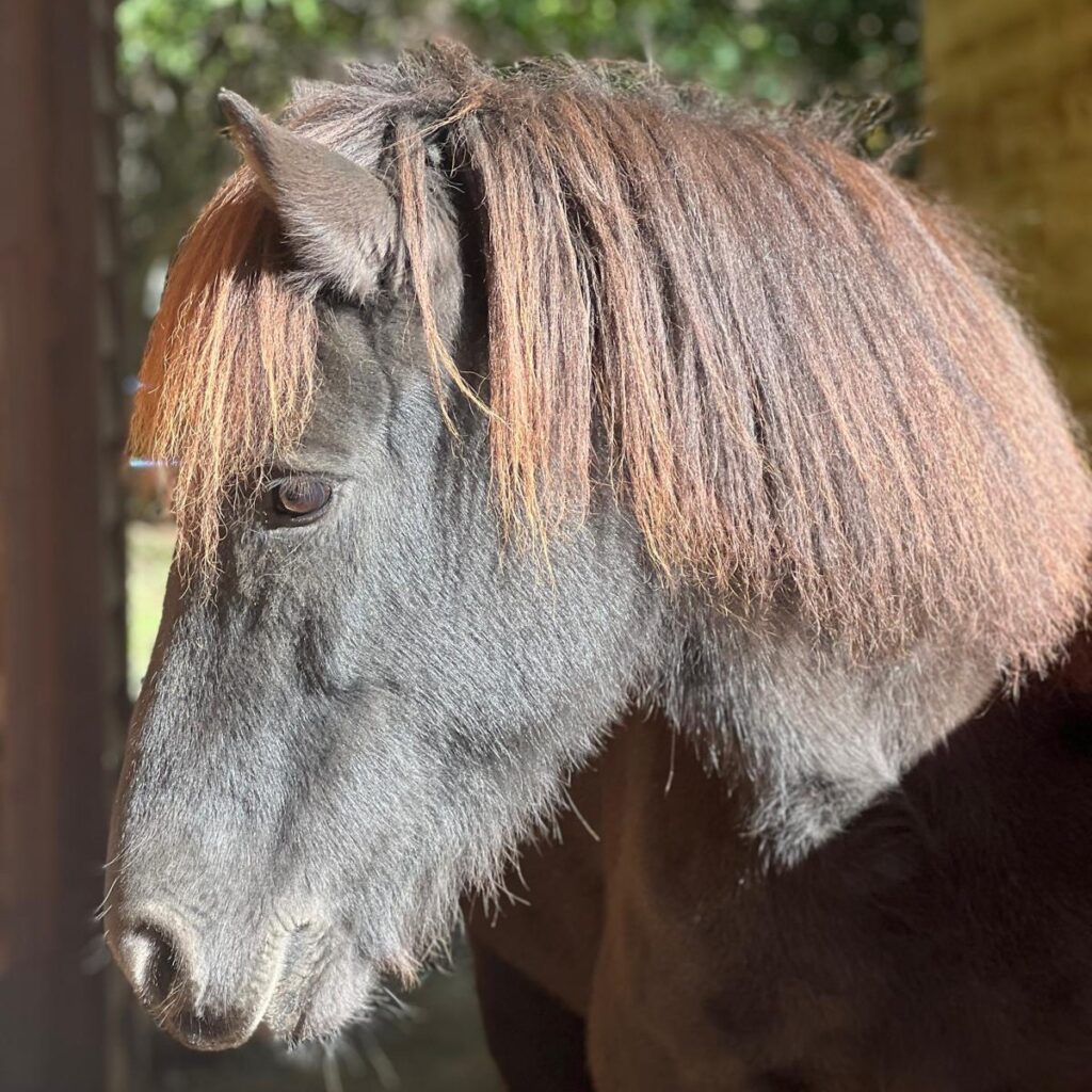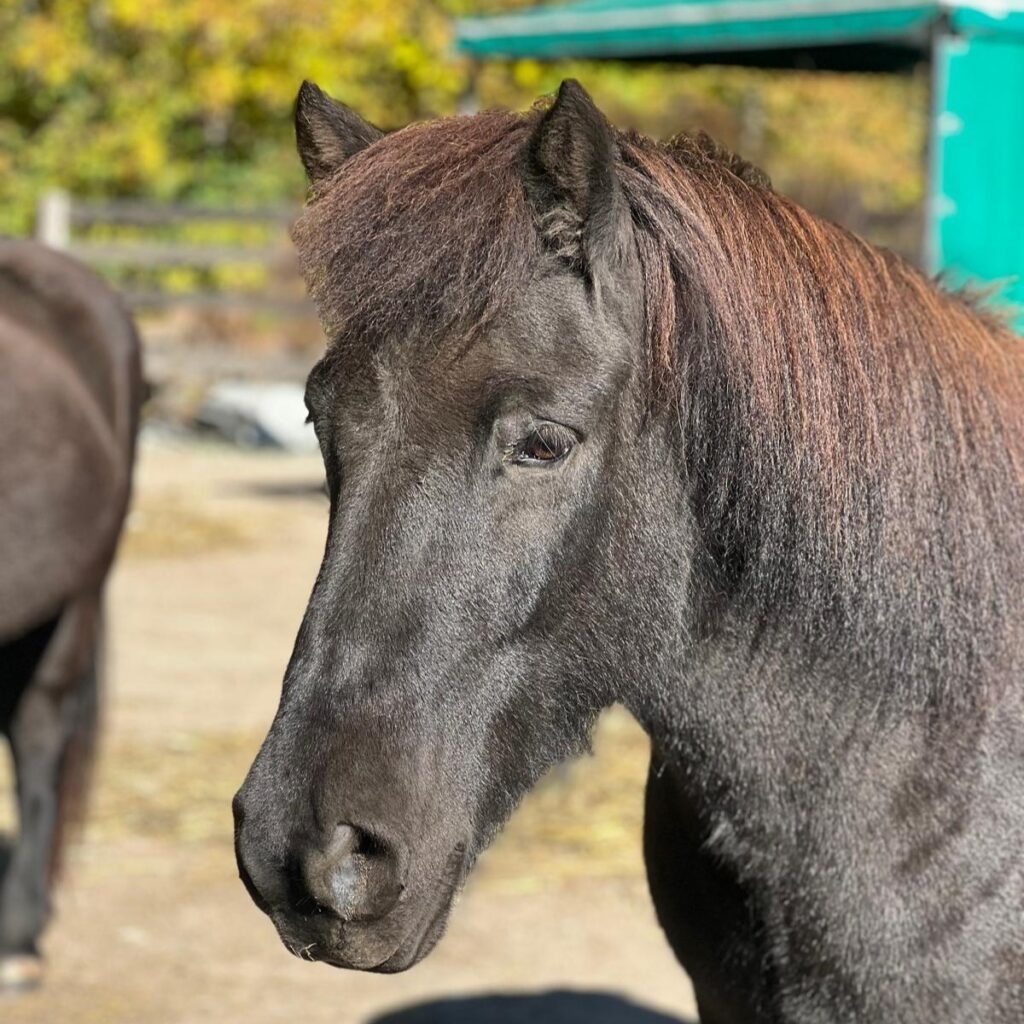 Islandpferd. Rappschecke. Stoisch, anspruchsvoll, ein äusserst ruhiges Wesen. Pensionspferd.